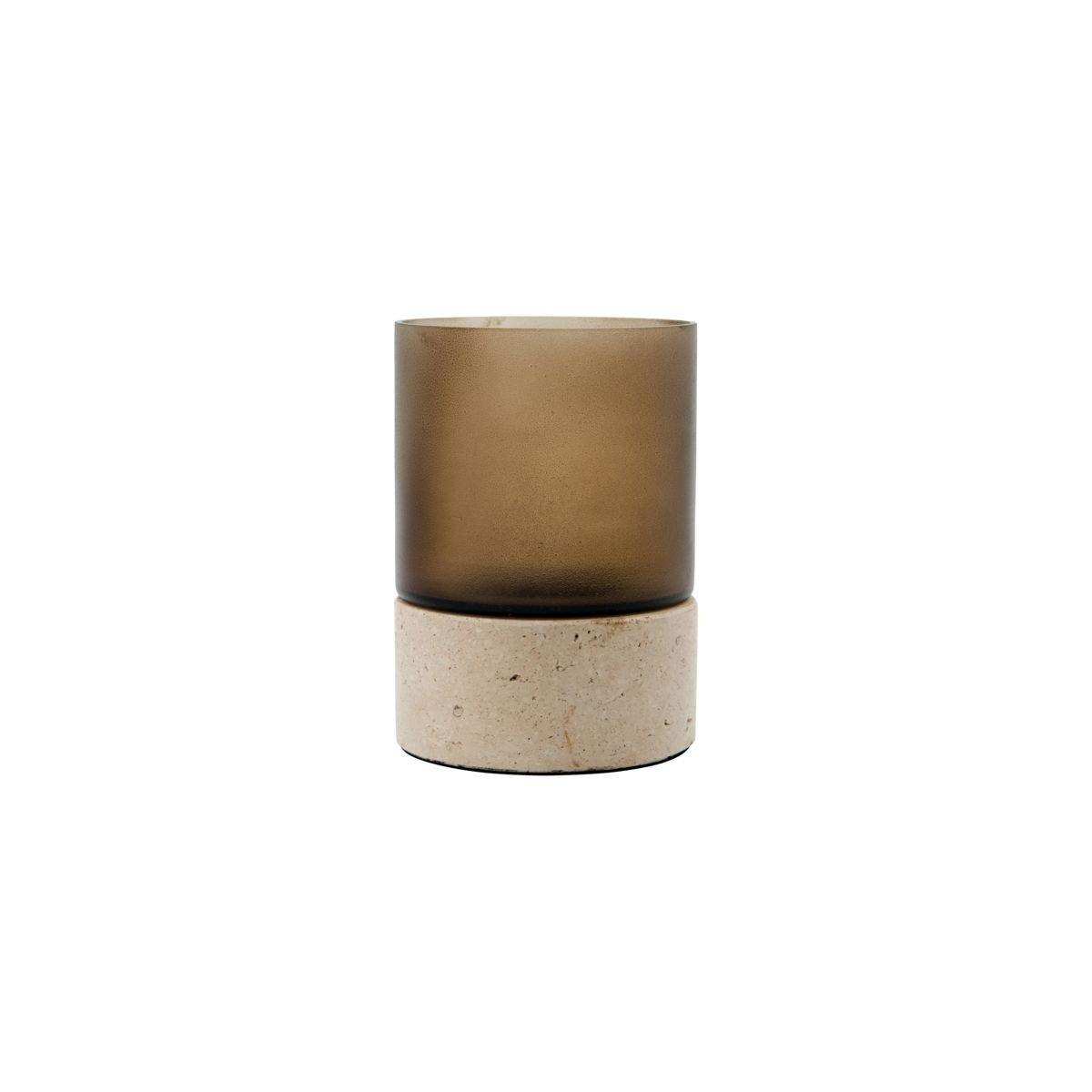 Het House Doctor Windlicht Rivo bruin 10cm is een prachtige accessoire dat je interieur op subtiele wijze verrijkt. Dit elegante windlicht, met een hoogte van 14 cm en een diameter van 10 cm, combineert mondgeblazen glas met een travertijn basis in een warme bruine tint. Het resultaat is een tijdloos en verfijnd stuk dat perfect is voor het creëren van een gezellige sfeer in elke kamer. Geschikt voor theelichten, stompkaarsen of LED-kaarsen, biedt dit windlicht een veelzijdige oplossing voor sfeerverlichting. Of je het nu alleen gebruikt of in combinatie met andere items uit dezelfde serie, het House Doctor Windlicht Rivo bruin 10cm voegt direct een stijlvolle touch toe aan je interieur.