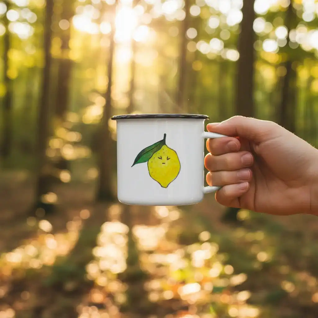 Fris, pittig en vol karakter – deze emaille mok met citroenillustratie zorgt voor een zonnige start van de dag. De speelse tekening met de licht zure blik brengt humor aan tafel en maakt elke slok net wat leuker. Perfect voor koffie, thee of een verfrissende limonade.